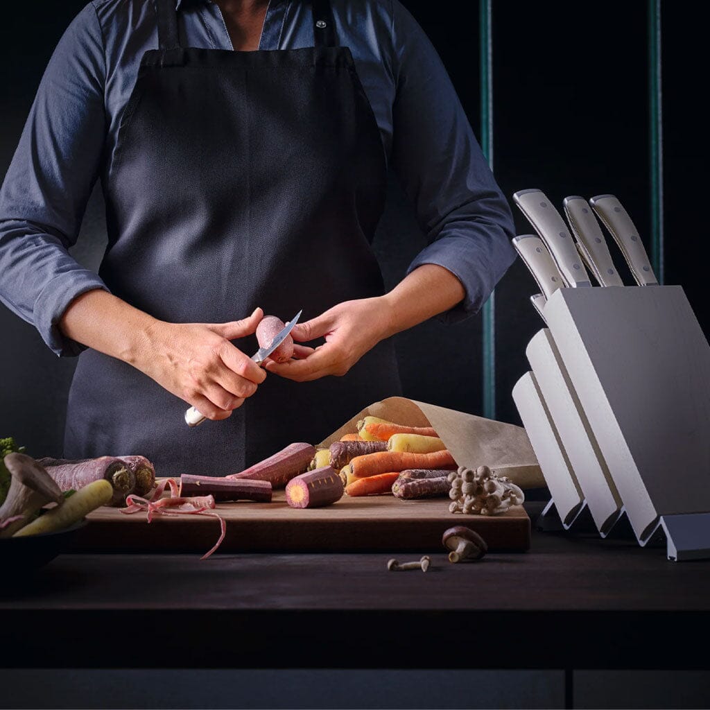 Wüsthof, opgericht in 1814 in Solingen, Duitsland, is al meer dan 200 jaar een familiebedrijf dat hoogwaardige messen produceert. Onder leiding van de zevende generatie, Viola en Harald Wüsthof, exporteert het merk naar meer dan 80 landen. Wüsthof staat bekend om uitzonderlijke kwaliteit, vakmanschap en duurzaamheid, met messen van hoogwaardig roestvrij staal en precisieslijping voor optimale scherpte. Het assortiment is ontworpen voor zowel professionals als thuischefs, met aandacht voor ergonomie en balans voor comfortabel en nauwkeurig snijden.