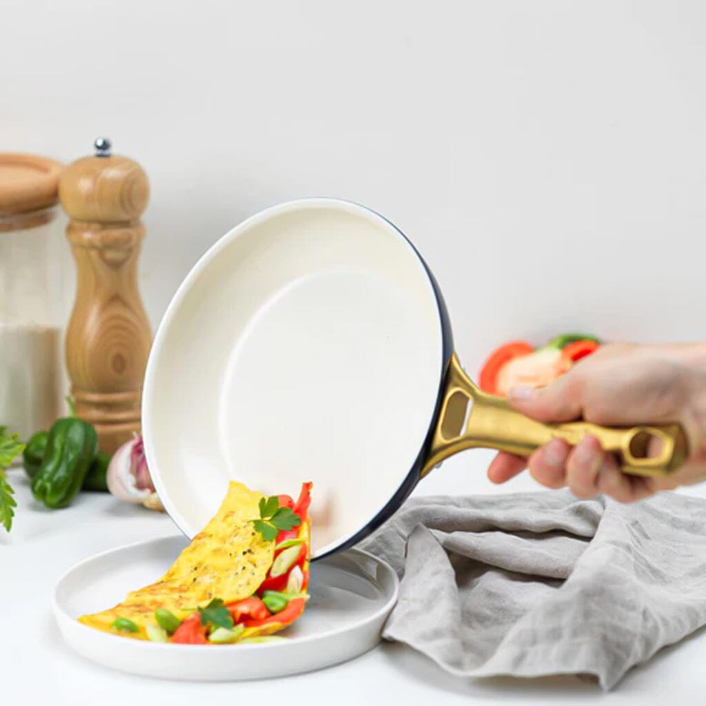 Pour une durée de vie optimale de vos poêles Padova, nous vous recommandons de les laver à la main avec un détergent doux et une éponge douce. Bien que les poêles passent au lave-vaisselle, le revêtement antiadhésif en céramique conserve sa qualité plus longtemps lorsqu'il est nettoyé manuellement. N'utilisez pas d'outils tranchants ni de tampons à récurer pour protéger le revêtement. Évitez la surchauffe et utilisez des ustensiles en silicone, en bois ou en nylon pour éviter tout dommage.