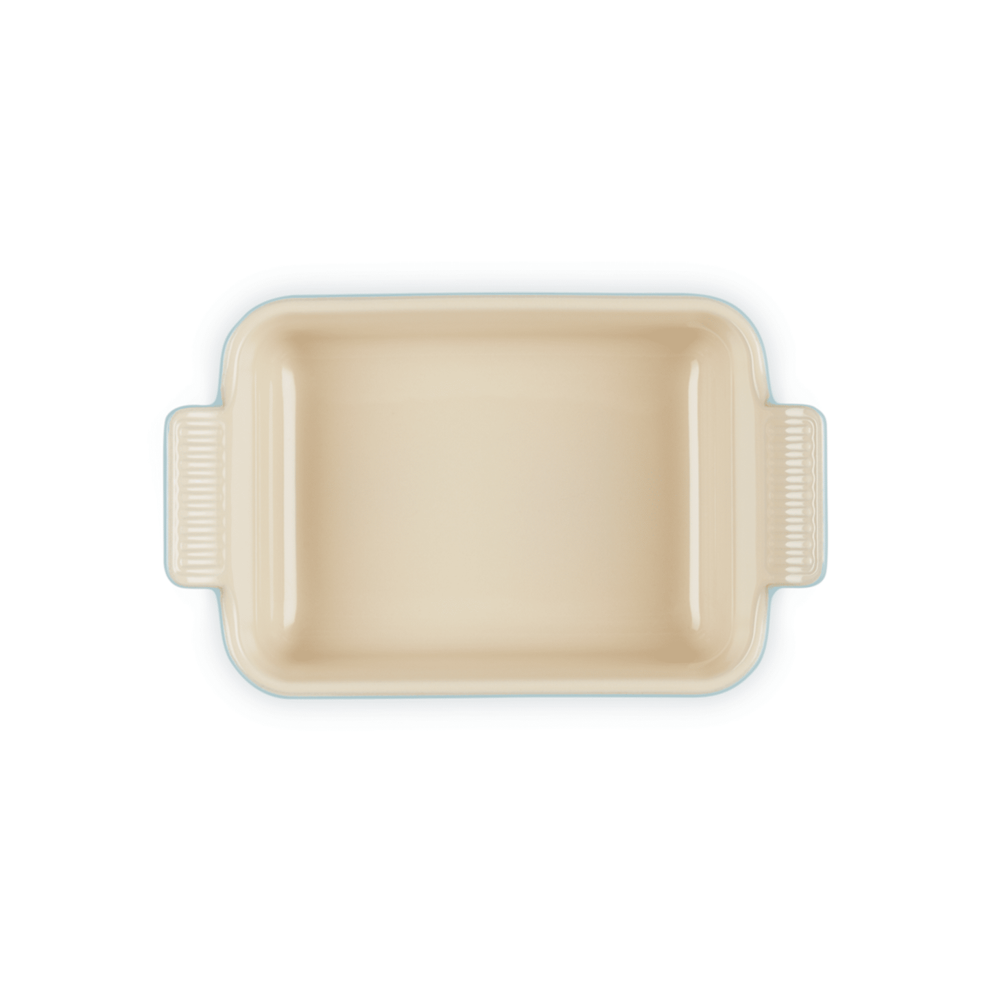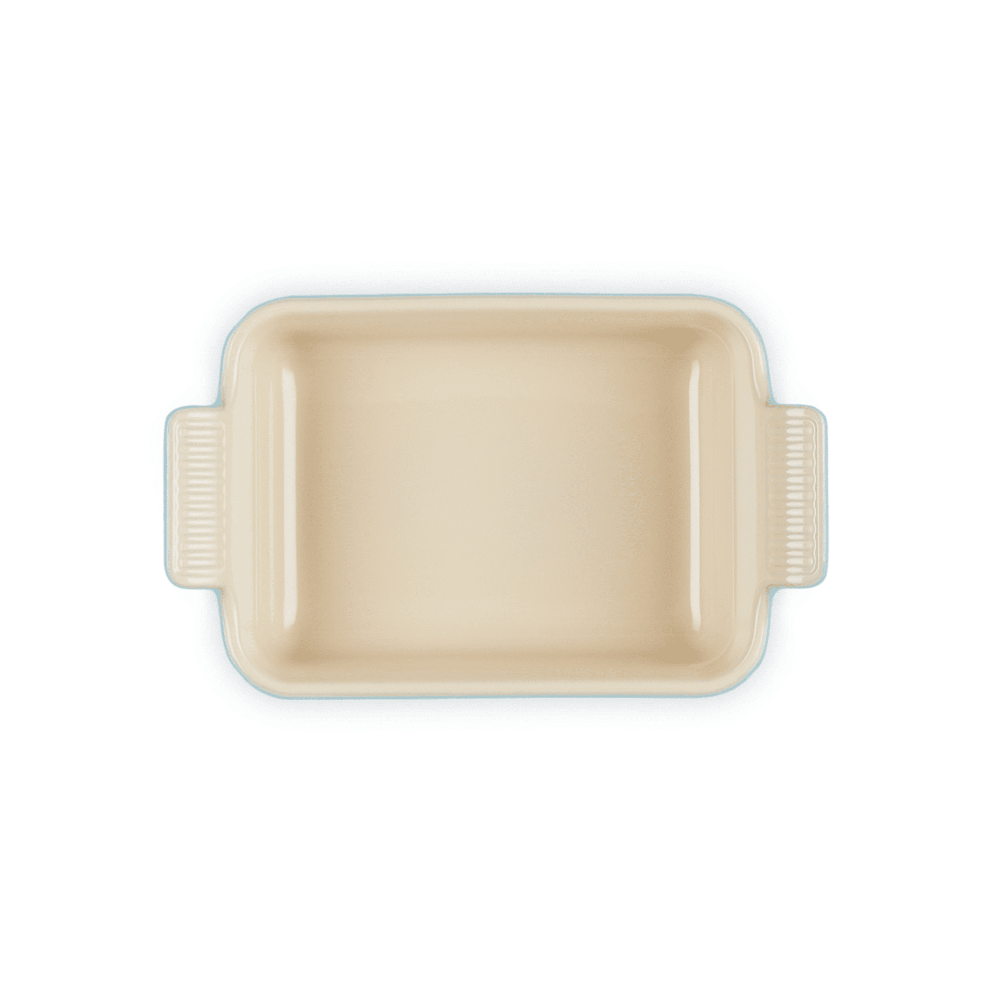 De Ovenschaal rechthoekig 19x14 cm van Le Creuset is een onmisbaar hulpmiddel in de keuken, ontworpen met de hoogste kwaliteit en precisie. Deze editie van de Heritage collectie is tot in detail afgewerkt en onderscheidt zich door zijn rechthoekige vorm met brede handvaten en zijn kleuren, zoals deze kleur: Caribbean Blue.