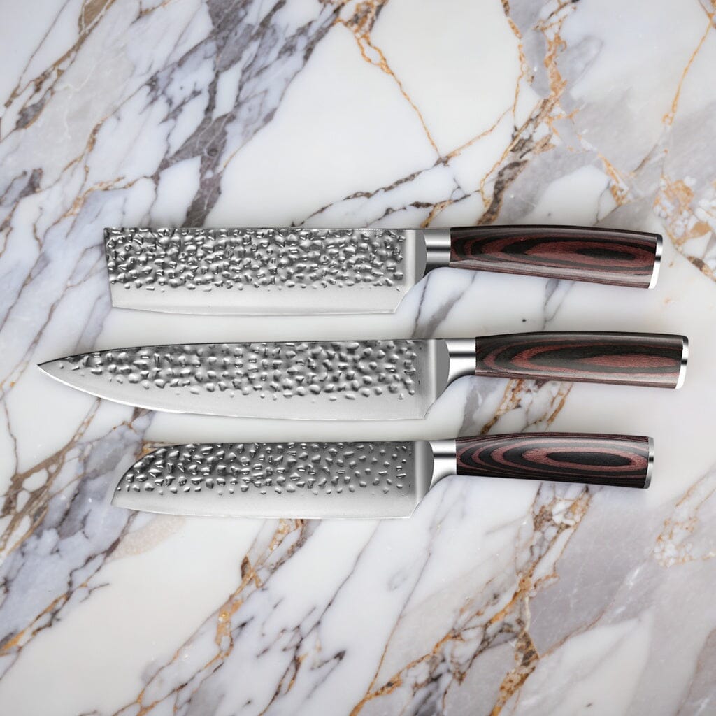 Order the Shinrai Hammered Stainless Steel Knife Set today and experience the difference in sharpness, comfort, and style.