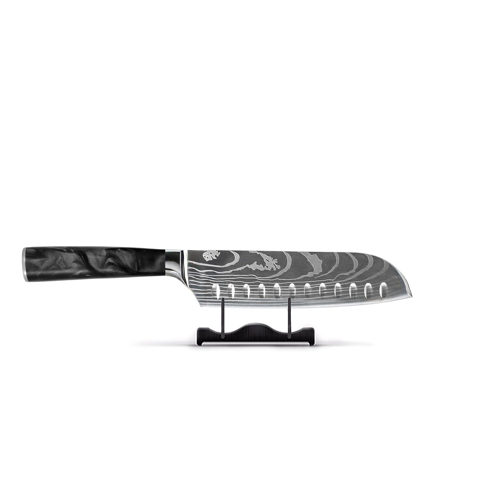 People who cut a lot probably suffer from it sometimes. Knives that become blunt very quickly and blades where the cut food always sticks to the knife. This is a thing of the past with this razor-sharp knife set from Shinrai Japan. The hand-crafted steel blade continues into a beautiful Epoxy Onyx handle.