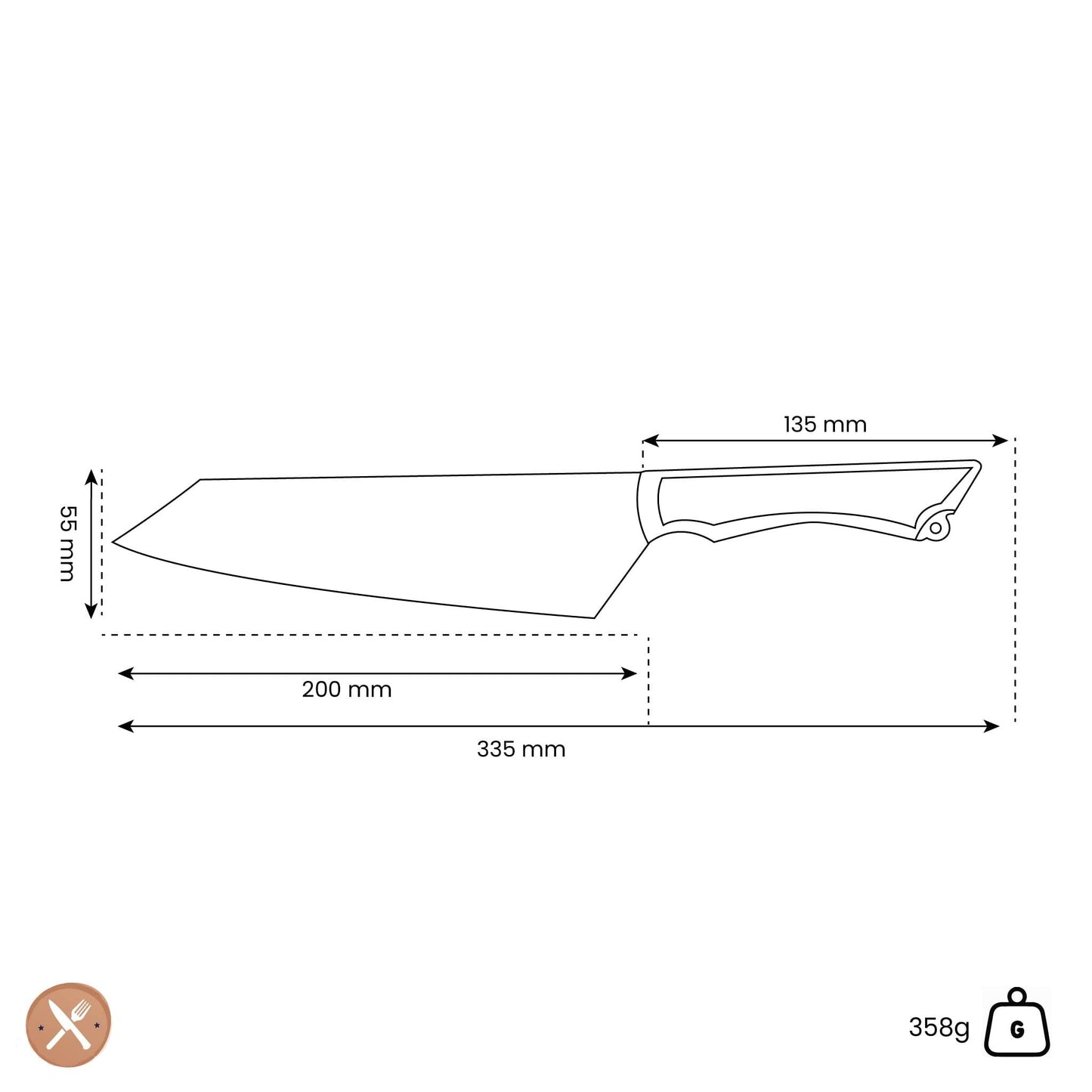 For the Overland series, Messermeister has chosen robust materials that can take a beating. The handles are made of grippy canvas micarta. This is a material that you often encounter on outdoor knives and survival knives. It is made of canvas and synthetic resin. This material retains its grip well. Even when there is moisture or fruit juice on the handle. Micarta takes over the traces of use, which ultimately makes the knife completely unique. Messermeister has taken Nitro Cobalt steel with a hardness of 62HRC for the blade. Characteristic of this type of steel is its excellent rust resistance and sharpness retention. The knives from the Overland series are made in Italy, unlike the other Messermeister knives that are produced in Germany.